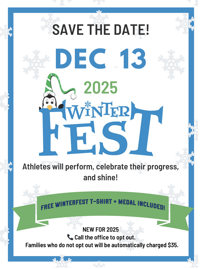 Every participating gymnast will receive a FREE Winterfest T-shirt and medal during the show!