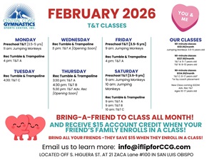 February is Bring A Friend month! Receive a $15 account credit when your friend's family enrolls in a class!