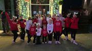 - All athletes will need to wear gloves (any color is fine) if they are tumbling, long black sweat pants or long black tights. No Jeans. Coaches should be ready to go in black pants/tights too. Also, no hats either. Just hair tied up neatly. Also, no hats either. Just hair tied up neatly. We will have every single child and coach in our special parade shirts. Parents volunteering can wear Holiday colors and gear, please. We also have some cute light-up Elf Hats for you or bring your own headgear or hats.
